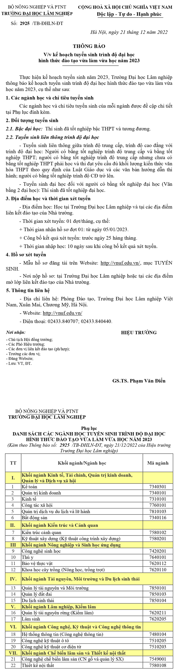 Nguồn: https://thongtintuyensinh.vn/DH-Lam-nghiep-tuyen-sinh-dai-hoc-hinh-thuc-VLVH-nam-2023_C80_D6598.htm