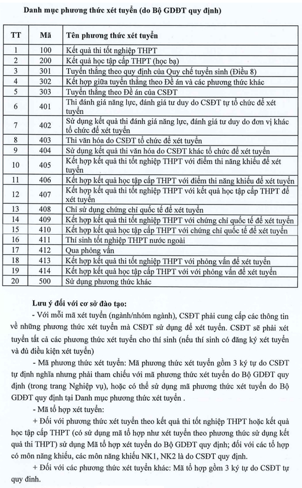 Nguồn: https://thongtintuyensinh.vn/Danh-muc-cac-phuong-thuc-xet-tuyen-DHCD-nam-2023-do-Bo-GDDT-quy-dinh_C212_D18739.htm