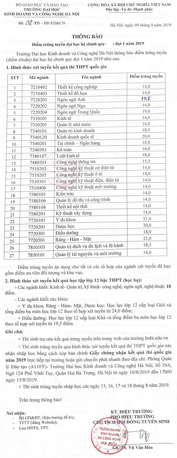 Nguồn: https://thongtintuyensinh.vn/Diem-chuan-2019-Truong-Dai-hoc-Kinh-doanh-va-Cong-nghe-Ha-Noi_C237_D16245.htm