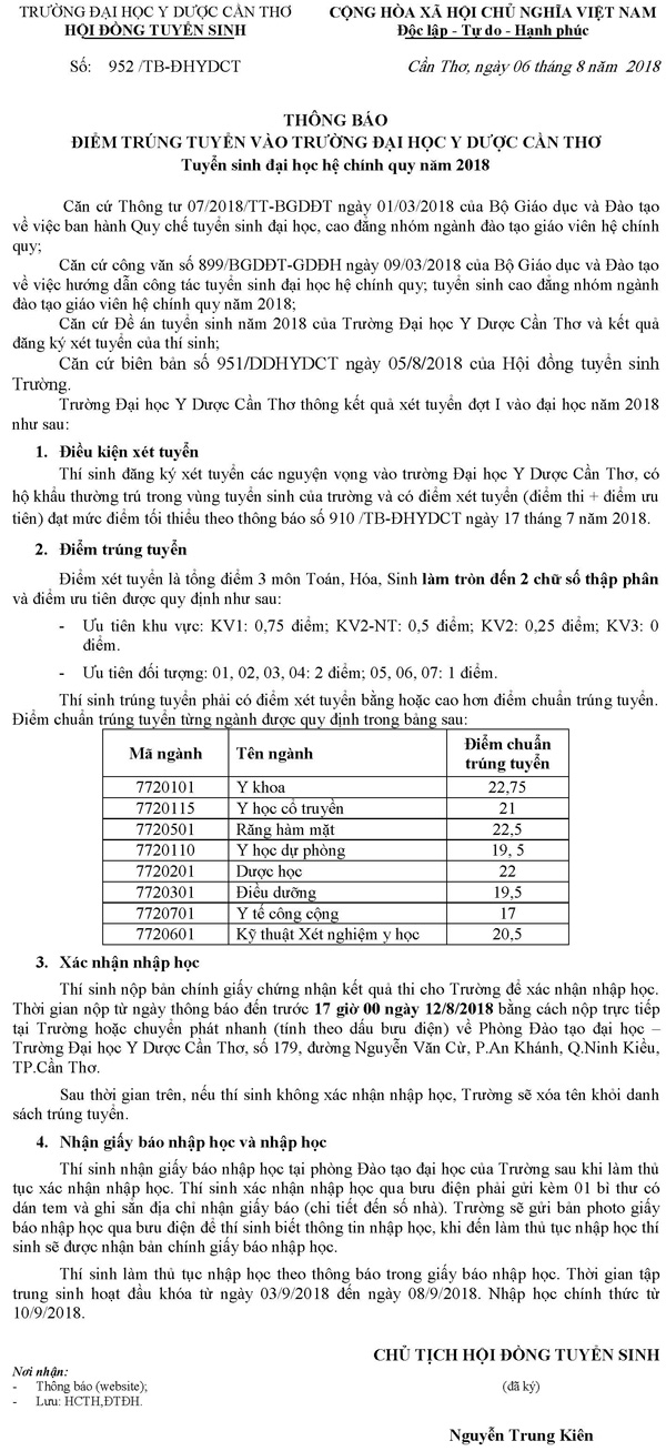 Nguồn: https://thongtintuyensinh.vn/Diem-chuan-nam-2018-cua-Truong-Dai-hoc-Y-Duoc-Can-Tho_C237_D15370.htm