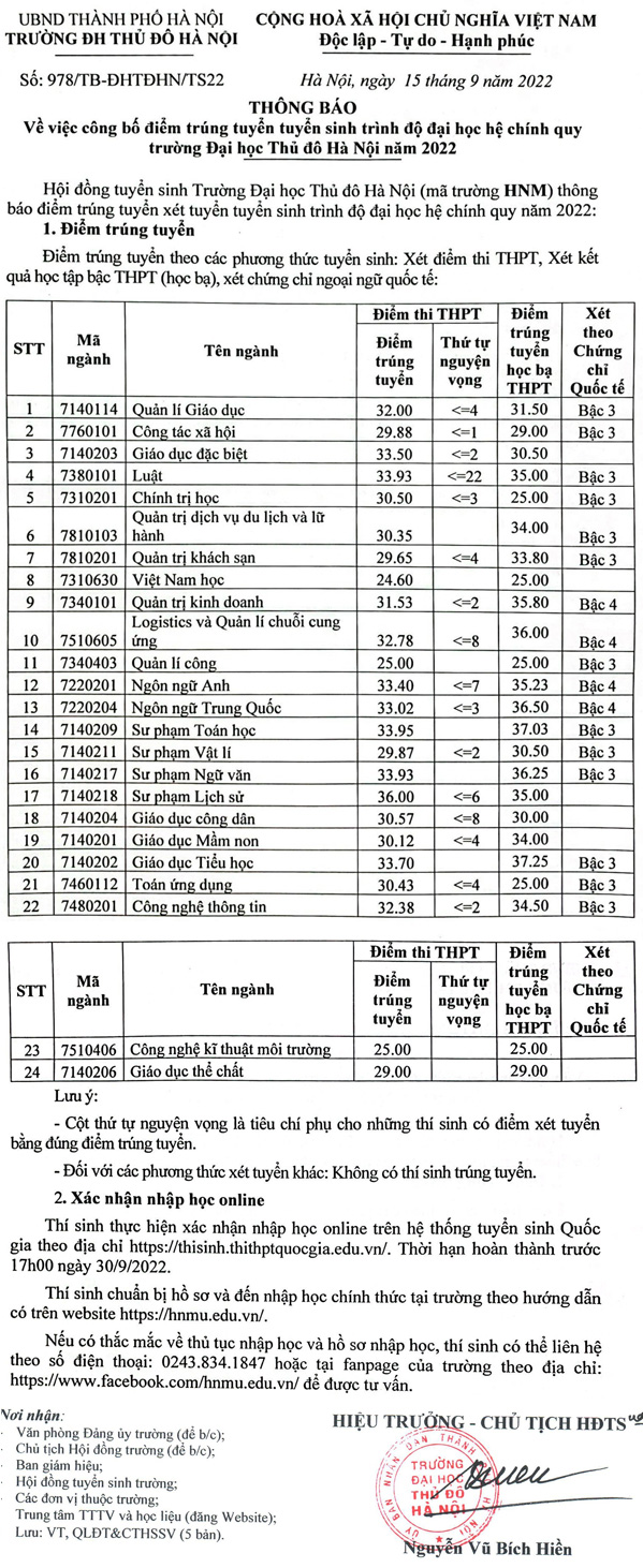 Nguồn: https://thongtintuyensinh.vn/Diem-chuan-trung-tuyen-nam-2022-cua-Truong-DH-Thu-do-Ha-Noi_C237_D18451.htm