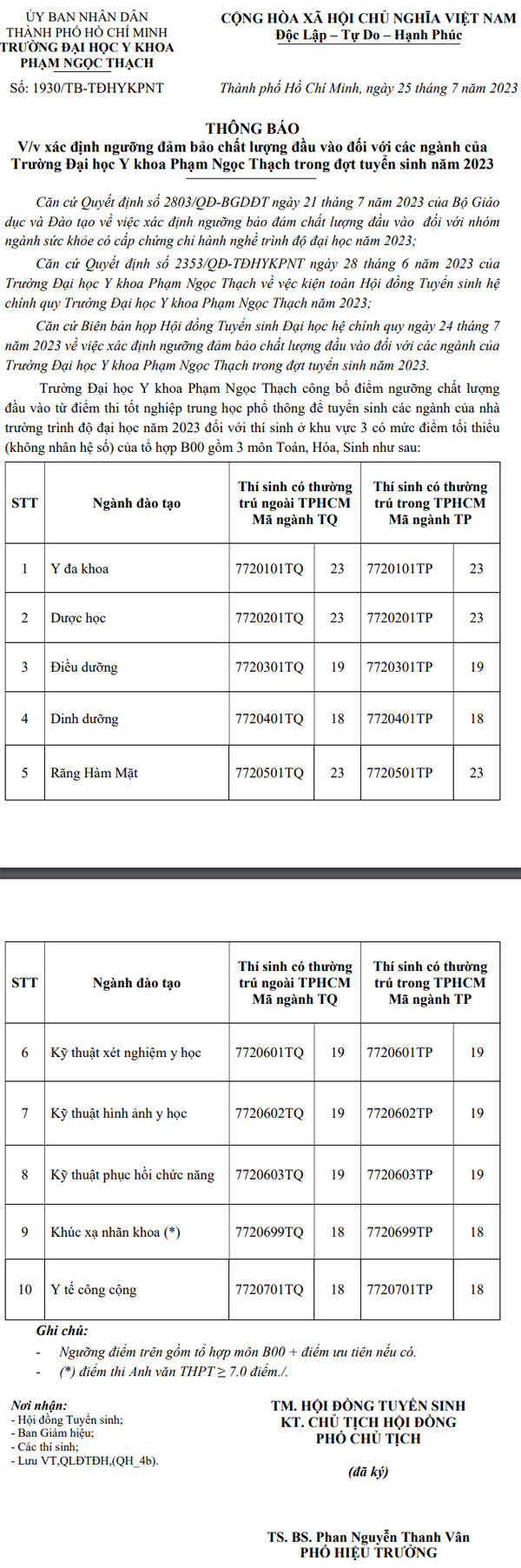 Nguồn: https://thongtintuyensinh.vn/Diem-san-nhan-ho-so-xet-tuyen-dai-hoc-chinh-quy-nam-2023-cua-Truong-DH-Y-khoa-Pham-Ngoc-Thach_C316_D19018.htm