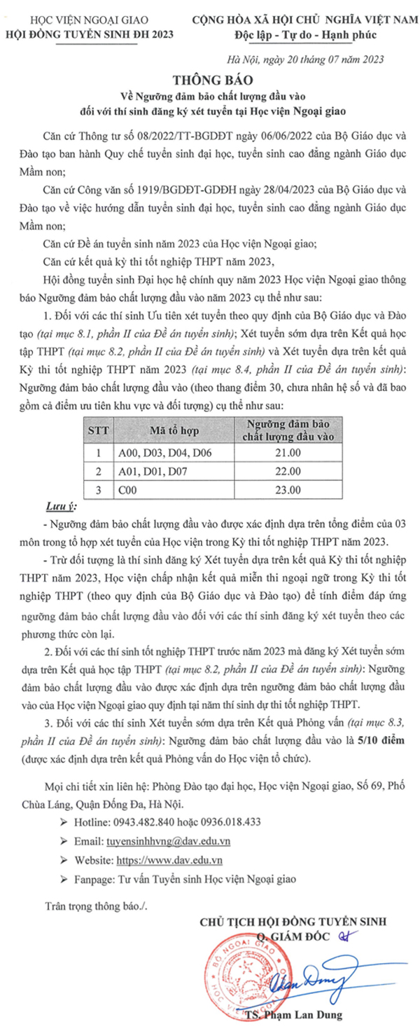 Nguồn: https://thongtintuyensinh.vn/Diem-san-nhan-ho-so-xet-tuyen-theo-ket-qua-thi-THPT-nam-2023-cua-Hoc-vien-Ngoai-giao_C316_D18974.htm