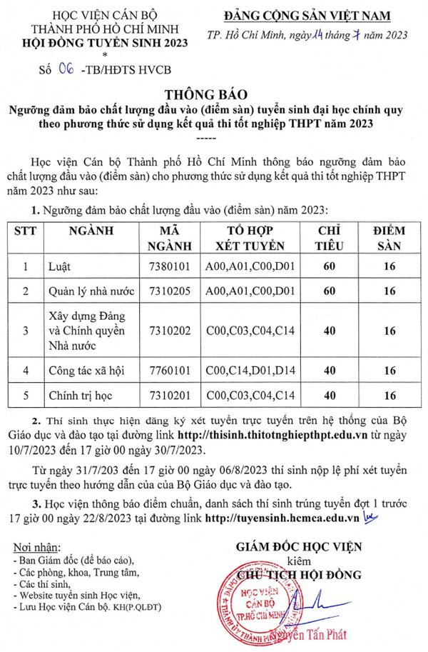 Nguồn: https://thongtintuyensinh.vn/Diem-san-nhan-ho-so-xet-tuyen-theo-ket-qua-thi-TN-THPT-2023-cua-Hoc-vien-Can-bo-TPHCM_C316_D19007.htm
